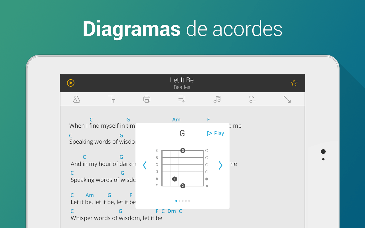 • Acceso a más de 150 000 tablaturas interactivas con una reproducción de sonido realista