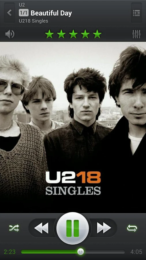 -Elección de 5 widgets de la pantalla de casa diferentes (4x1, 2x2, 3x3, 4x4, 4x2). Todos los widgets son personalizables y de aspecto configurable: 6 SKINS diferentes disponibles, opción para mostrar artista imagen en lugar de las ilustraciones del álbum, opción de mostrar las calificaciones, controles de reproducción aleatoria / repetición etc