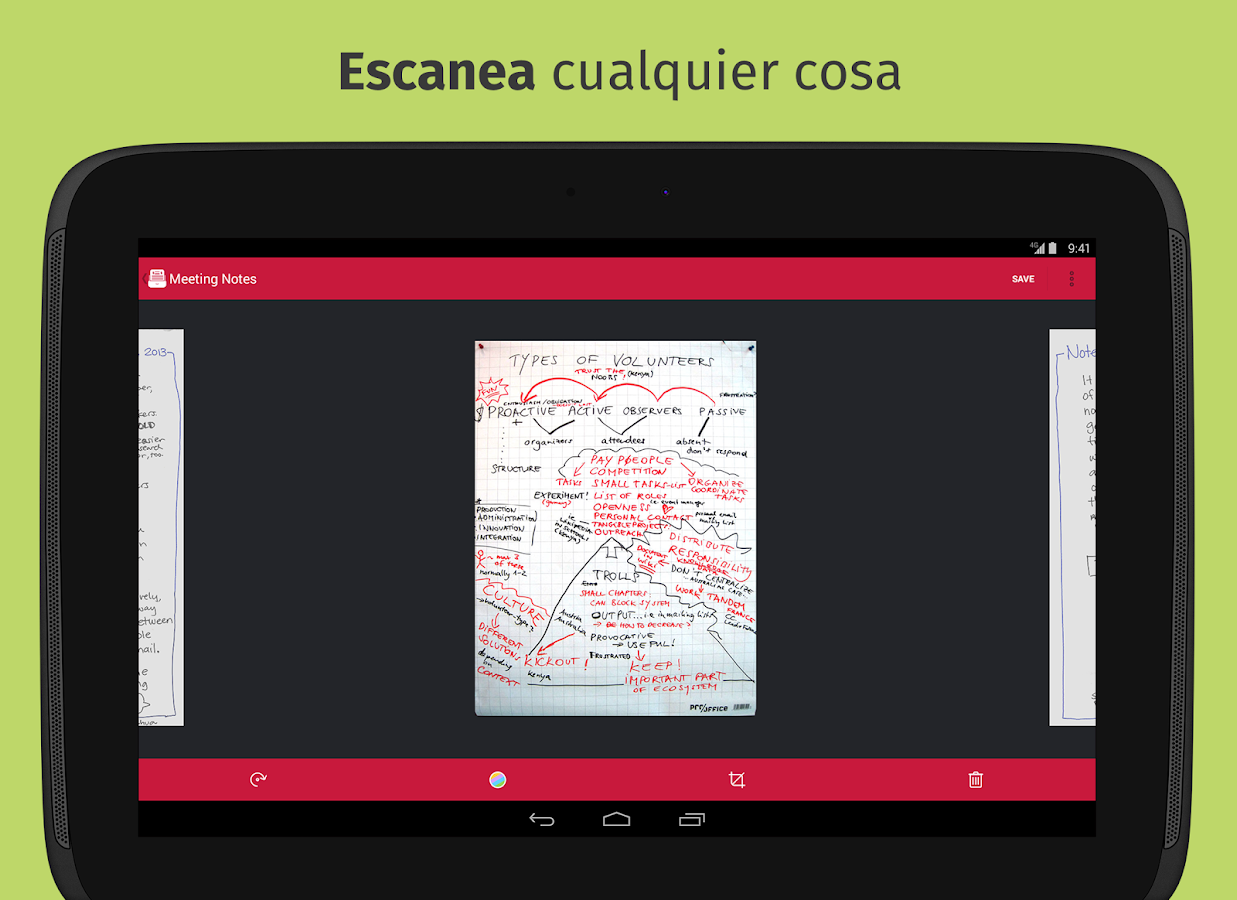 • Estudiantes: ¿sueles olvidar lo que tu profesor escribió en la pizarra o el rotafolio en la última clase? Con Scanbot puedes capturar y compartir los apuntes con tus compañeros al instante.